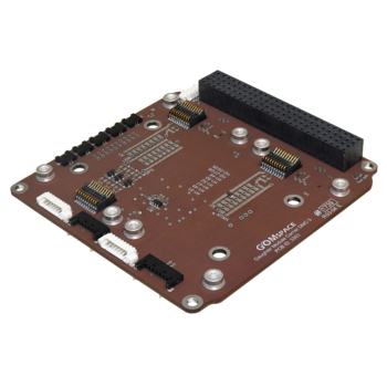 The NanoDock DMC-3 is designed to carry up to four GomSpace daughterboards (not included) or up to two daughterboards while also providing mounting and interfacing for a GPS receiver. Each daughterboard connector has communication interfaces (I2C and CAN) and configurable supply lines routed to the stack connector, and thus allow the DMC-3 to effectively host four subsystems.
